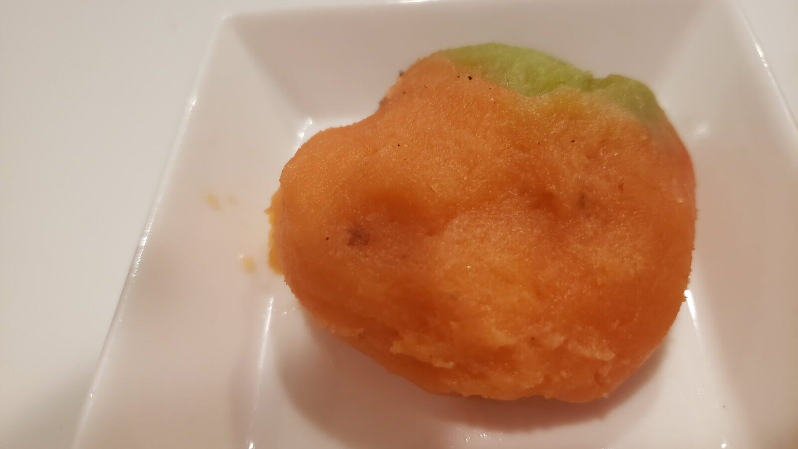 こないだは、冷凍のさつまいもペーストと食用色素で作ってくれたかぼちゃ…